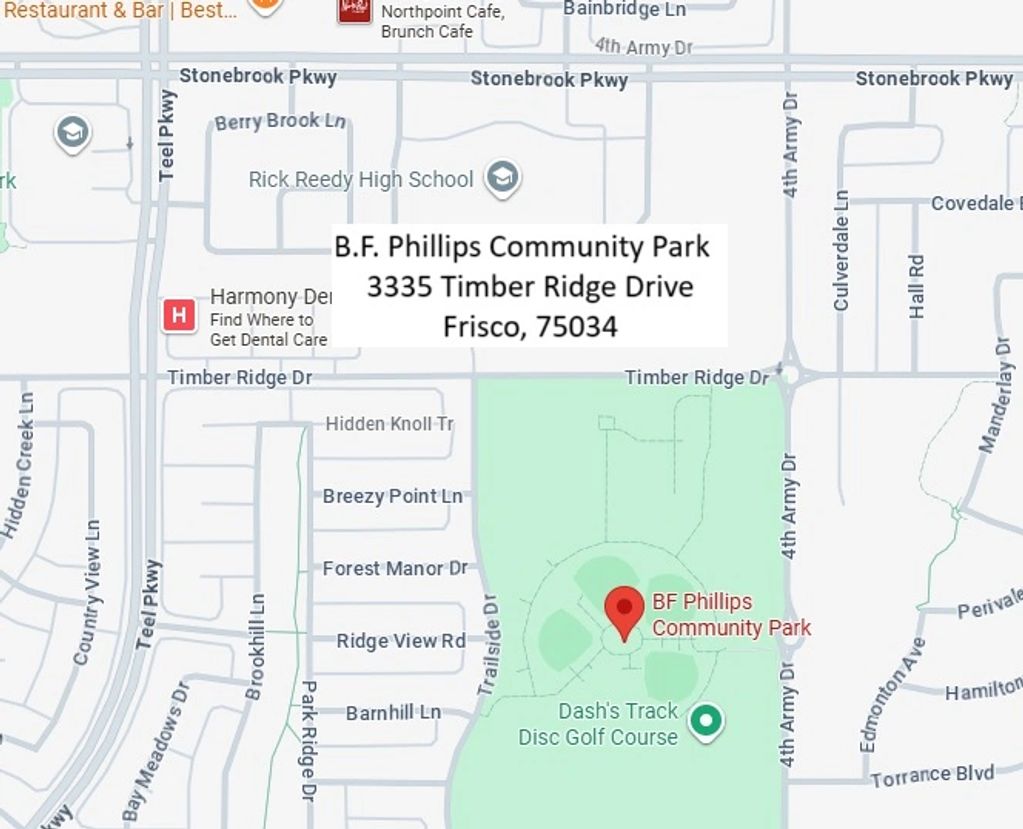 Lax Gives Back takes place at BF Phillips Park, across from Reedy High School, in Frisco. The address is: